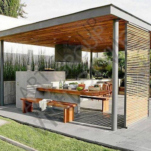 Пергола М10 Пергола М10 размером В базовую комплектацию входит: силовой каркас из металла, верхняя обвязка профилем, обшивка потолка бруском, покраска, монтаж. Отдельно рассчитываются фундамент, варианты остекления, варианты закрытия/декорирования стен, пол, отделочные материалы, барбекю-комплекс, мебель, электрика и декор пространства, доставка. Другие размеры и комплектации по запросу.