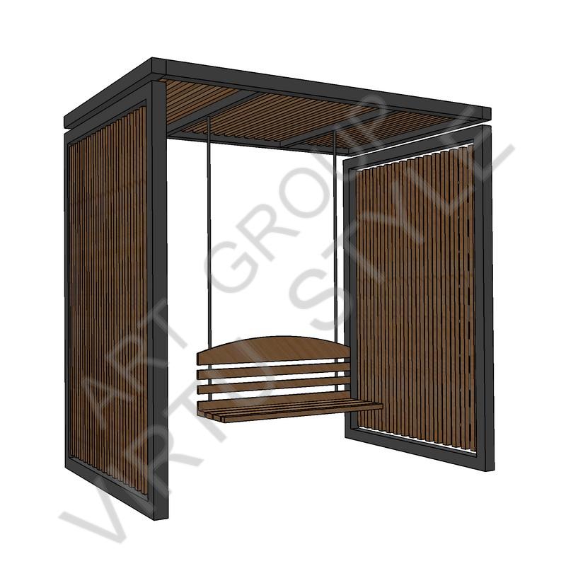 Модуль Перголы с качелями. Может быть выполнен в разном количестве совмещенных модулей, с разными видами скамейки и отделки. Обсуждается индивидуально.