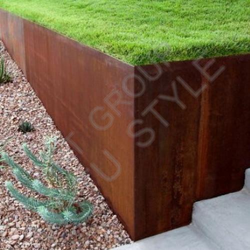 Подпорные стенки применяются для сдерживания обрушения грунта на уклонах местности. Часто декоративную сталь крепят по верх основного сооружения.