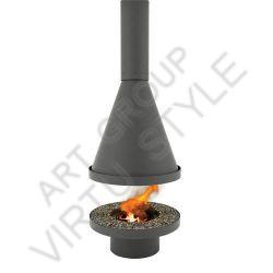Открытая дровяная топка, черное матовое покрытие, столешница металл с камушками (светлый вариант!)