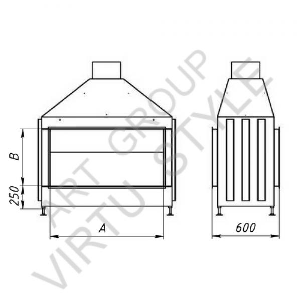 Двухсторонняя топка для камина премиум класса VIRTU, открытый тип, сквозная, конструкция топки позволяет добиться максимально возможных размеров топочной части для пространственного созерцания огня, а также создать свою уникальную модель камина. Варианты комплектации - стационарные стекла и стационарные стекла с защитным стеклянным экраном.