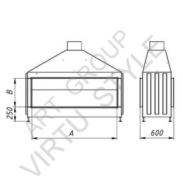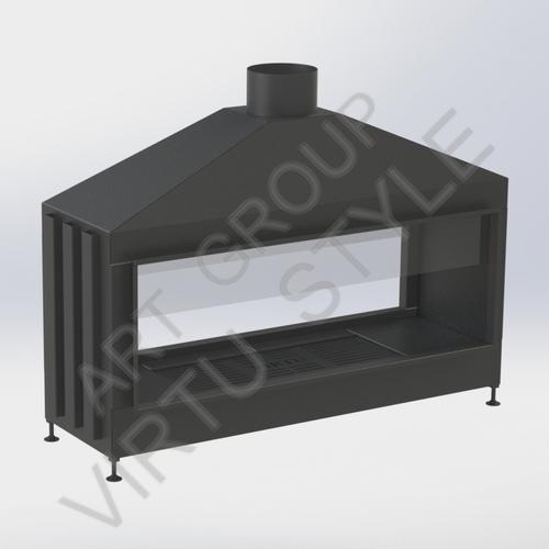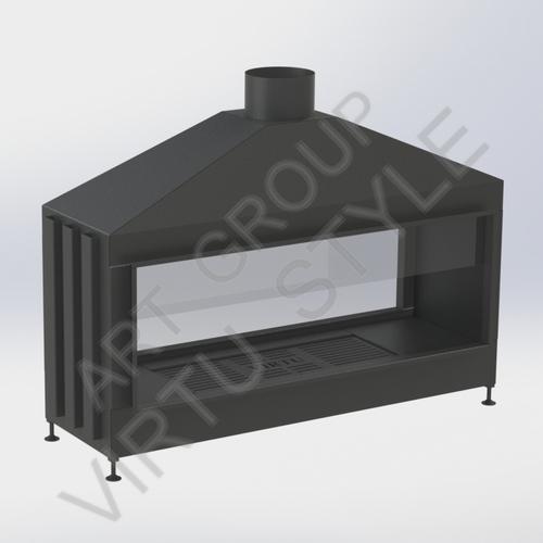 Двухсторонняя сквозная топка VIRTU ( тунельная). Конструкция топки позволяет добиться максимально возможных размеров топочной части для пространственного созерцания огня, а также создать свою уникальную модель камина. Комплектация - стационарное глухое стекло и короткое стекло, чугунная футеровка, съемный пеплосборник, колосниковые пластины. Дополнительные опции - выносная ручка шибера, регулеровка поддува.