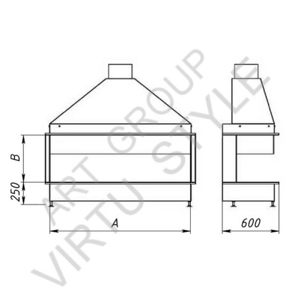 Топки для каминов премиум класса VIRTU, открытый тип, конструкция топки позволяет добиться максимально возможных размеров топочной части для пространственного созерцания огня, а также создать свою уникальную модель камина.