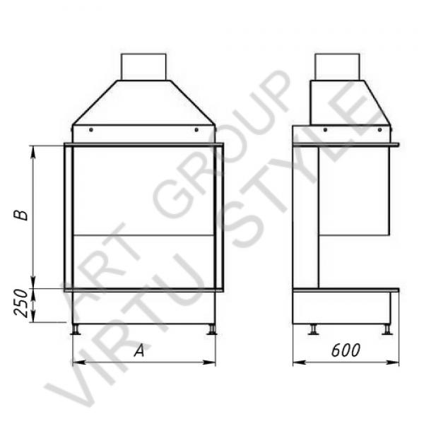 Топки для каминов премиум класса VIRTU, открытый тип, конструкция топки позволяет добиться максимально возможных размеров топочной части для пространственного созерцания огня, а также создать свою уникальную модель камина.