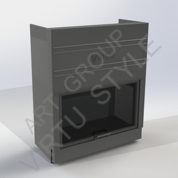 Духстороняя топка для камина, премиум класса, VIRTU PRO - закрытый тип, сквозная, с подъемом дверки вверх ( "гильотина" ) и боковым открыванием, легкий подъем дверки, рельефная футеровка, система "чистое стекло", подовое горение дров. 100% защита от искр.