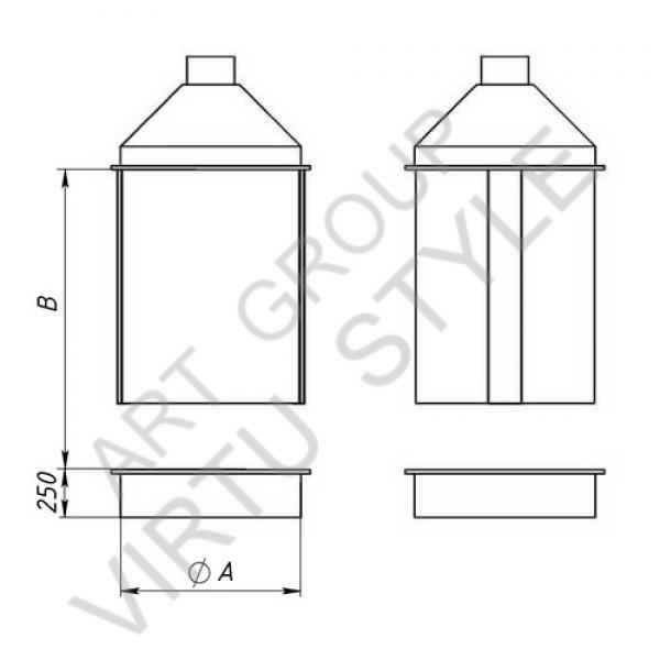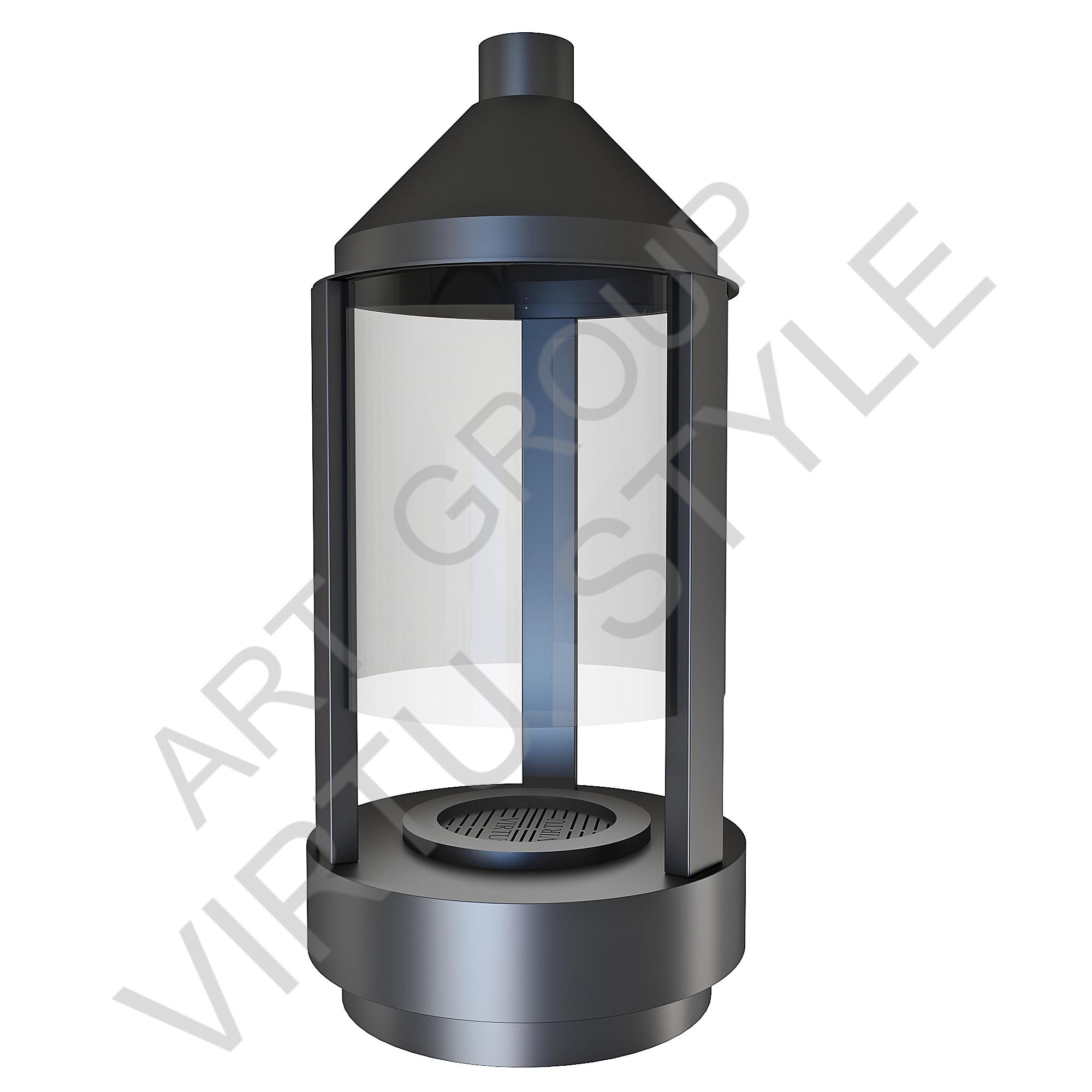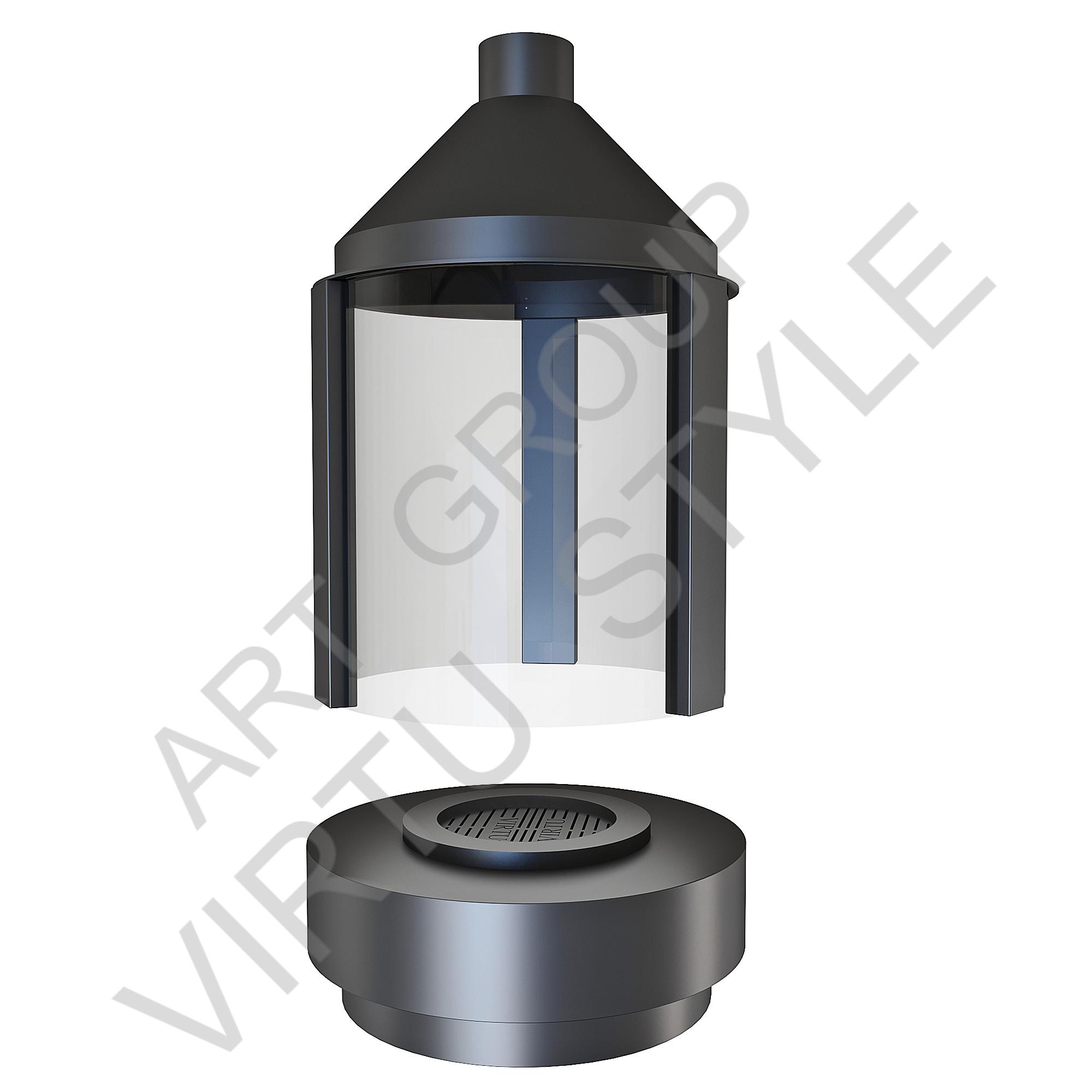 Топка VIRTU с тремя радиусными стеклами. Диаметр камина 980 мм. Высота по заказу. Варианты топки - подвесная или опорная. Облицовка топки изготавливается из материала по согласованию.