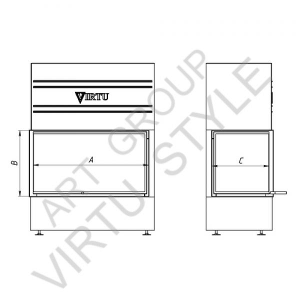 Двухсторонняя топка премиум класса VIRTU PRO для каминов закрытого типа, с подъемом дверки вверх ("гильотина"), легкий подъем дверки, подовое горение дров, рельефная футеровка, система "чистое стекло", 100% защита от искр.