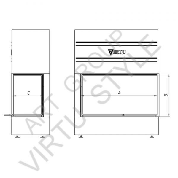 Двухсторонняя топка премиум класса VIRTU PRO для каминов закрытого типа, с подъемом дверки вверх ("гильотина"), легкий подъем дверки, подовое горение дров, рельефная футеровка, система "чистое стекло", 100% защита от искр.