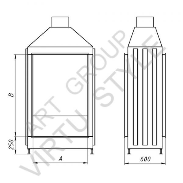 Двухстороняя сквозная топка для камина премиум класса VIRTU, открытый тип, конструкция топки позволяет добиться максимально возможных размеров топочной части для пространственного созерцания огня, а также создать свою уникальную модель камина. Дополнительные опции - стационарные стекла, стационарные стекла с защитным стеклянным экраном, стационарное стекло с дверкой стеклянной и стационарное стекло с дверкой стеклянной с защитным стеклянным экраном.