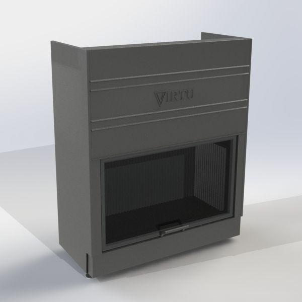 Духстороняя топка для камина, премиум класса, VIRTU PRO - закрытый тип, сквозная, с подъемом дверки вверх ( "гильотина" ) и боковым открыванием, легкий подъем дверки, рельефная футеровка, система "чистое стекло", подовое горение дров. 100% защита от искр.