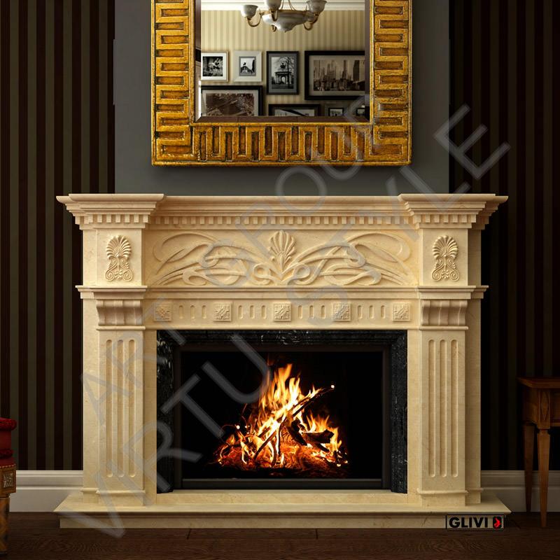 • Камин выполнен из полированного мрамора Crema Marfil, Negro Marquina.
