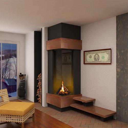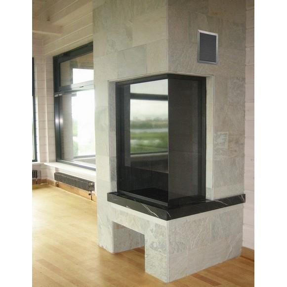 Пристенный, угловой камин с широкоформатной открытой стеклянной топкой, с облицовкой. Может быть изготовлен по любым размерам. Преимущество дизайна этой модели в том,что при изменении габаритов камина, легко меняется его внешний вид. Декорацию облицовки и столешницы можно подобрать любую - сталь в черном цвете(базовый вариант), мраморные плиты, медь и др.. Есть 3D модель.