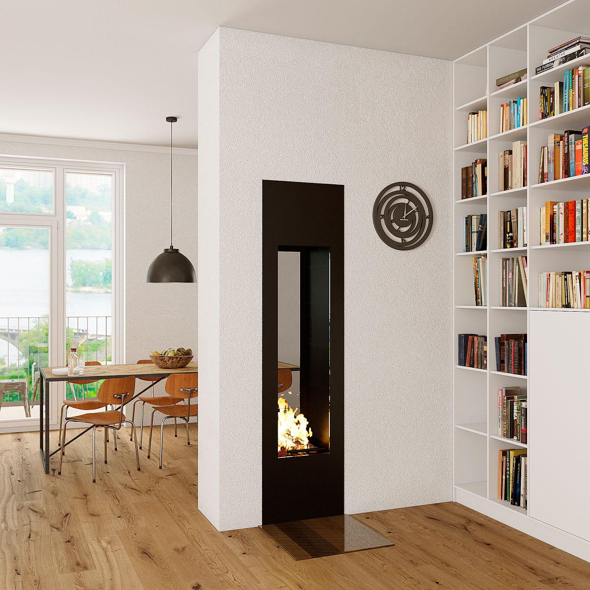 Новинка Фабрики VIRTU - камин Candle. Особенности дизайна камина это узкие габаритные формы - 550х2100х400 мм , при высокой стеклянной топке 350х1300 мм. Преимущество этой модельной линейки в том, что камин уже готов, ему не надо дополнительной олицовки, только подключение дымохода. Модель представлена неколькими вариантами - односторонний, двухсторонний - сквозной, трехсторонний и четырехсторонний - центральный. В базовой комплектации камин в черном цвете. Возможны изменения размеров и под заказ - предтопочный лист из металла, стекла, съемный стеклянный экран.
