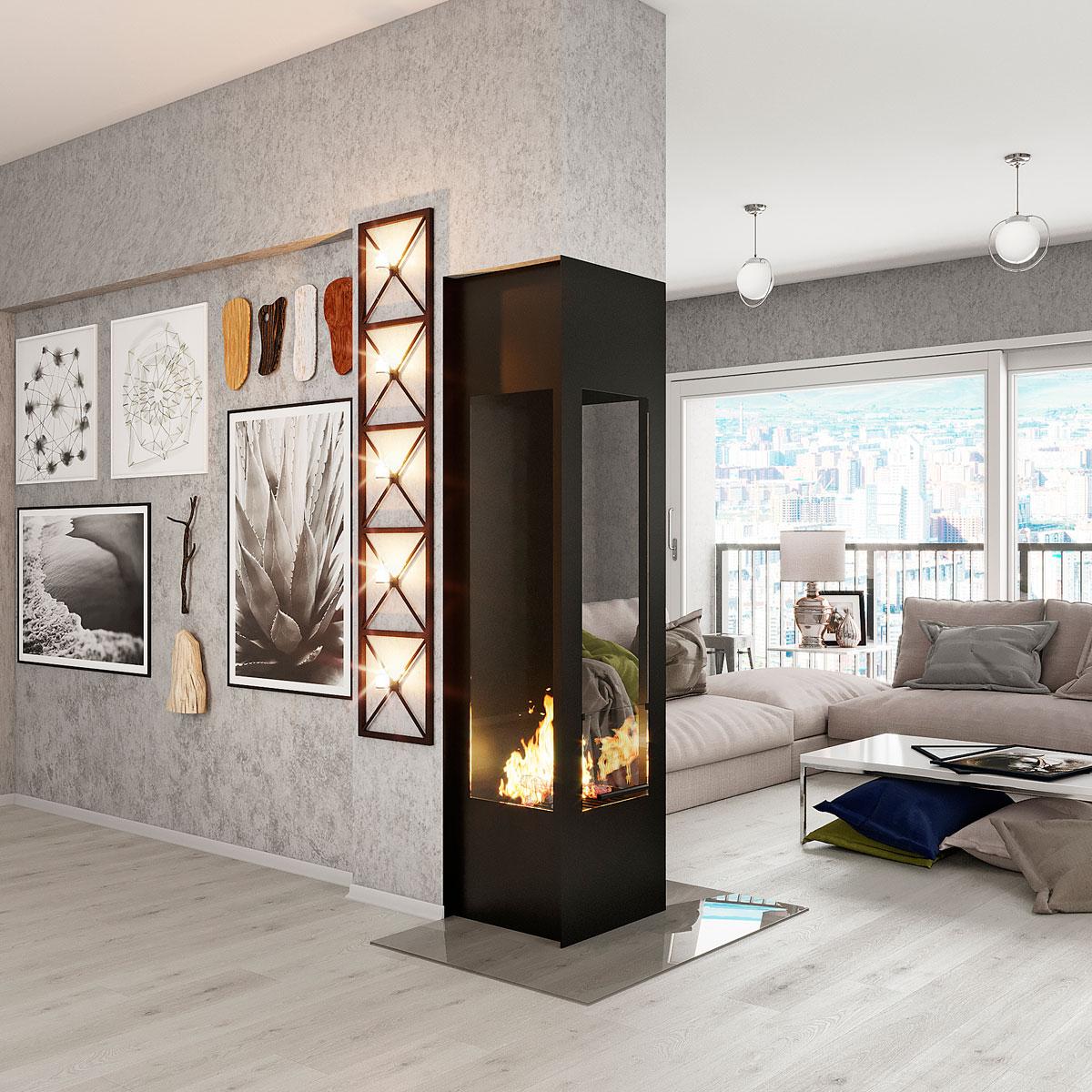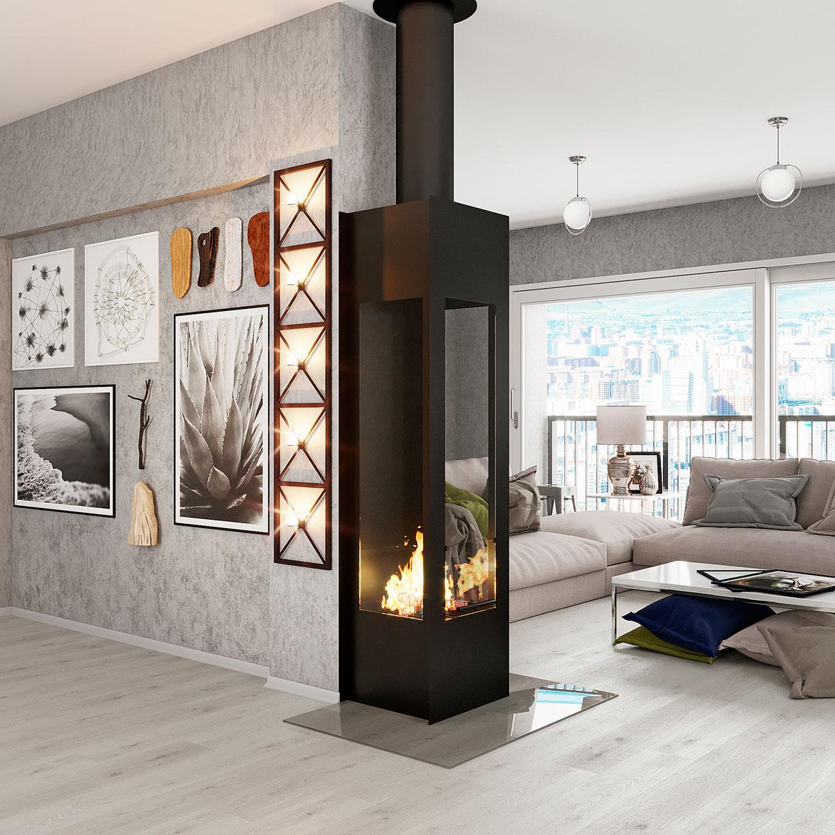 Новинка Фабрики VIRTU - камин Candle. Особенности дизайна камина это узкие габаритные формы - 550х2100х400 мм , при высокой стеклянной топке 350х1300 мм. Преимущество этой модельной линейки в том, что камин уже готов, ему не надо дополнительной олицовки, только подключение дымохода. Модель представлена неколькими вариантами - односторонний, двухсторонний - сквозной, трехсторонний и четырехсторонний - центральный. В базовой комплектации камин в черном цвете. Возможны изменения размеров и под заказ - предтопочный лист из металла, стекла, съемный стеклянный экран.