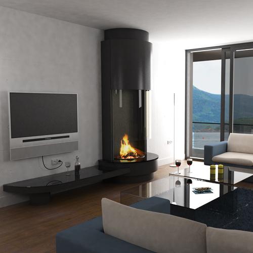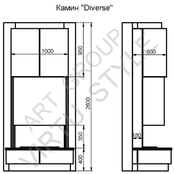 Камин Диверс С является пристенной модификацией центрального камина. Топочная часть выполнена из металла и полукруглого стекла. Может быть изготовлен в любом цвете по желанию заказчика.