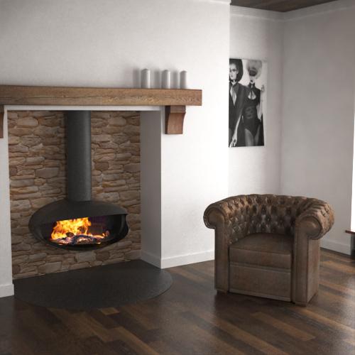 Пристенный,подвесной камин. Это модель одна из модификаций центрального одноименного камина Osprey. Задняя стенка закрыта и футерована чугунной пластиной. Стандартный цвет - черный матовый. Возможно установить защитный сетчатый экран. Предтопочный лист изготавливается под заказ ( металл,стекло,керамика). Есть 3D модель.