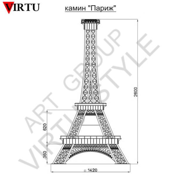 Это уникальный камин, защищенный патентом, который является копией Эйфелевой башни. Модель имеет три размера по высоте от 2.6 до 4 метров. Камин вписывается в помещения большого пространства - залы, рестораны или можно установить его на приусадебном участке в зоне патио и использовать как Барбекю. Эта модель была представлена на всемирной каминной выставке в Италии,г.Верона Progetto Fuoco.