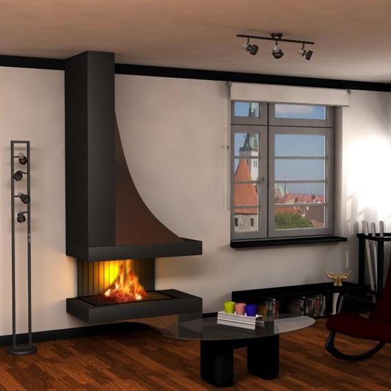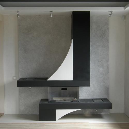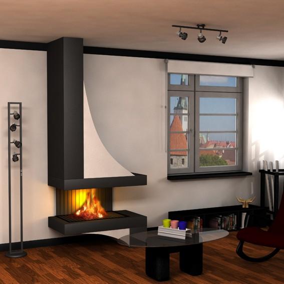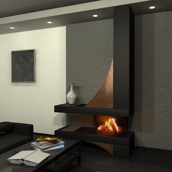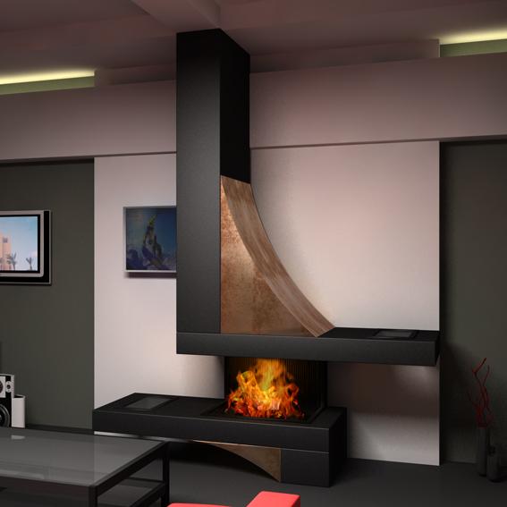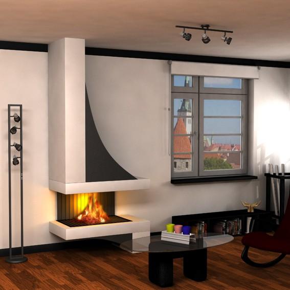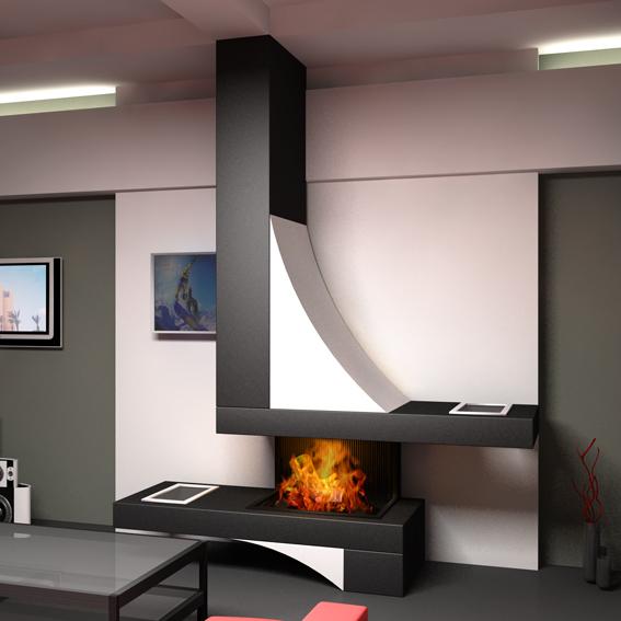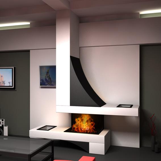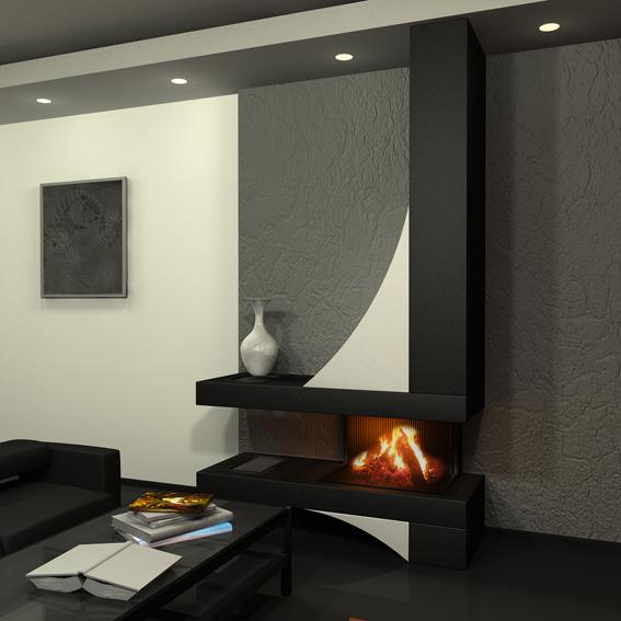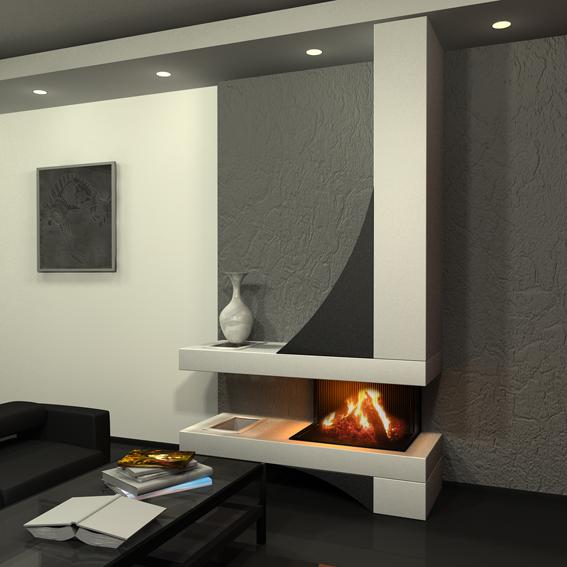 Очень интересный вариант пристенного камина - изящное сочетание простых геометрических линий с плавными изгибами облицовки. Камин легко комбинируется по цветам и материалам. Столешница в стандарте из металла, но под заказ можно установить мрамор,стекло. Топка может комплектоваться защитными экранами из стекла. Есть 3D модель.